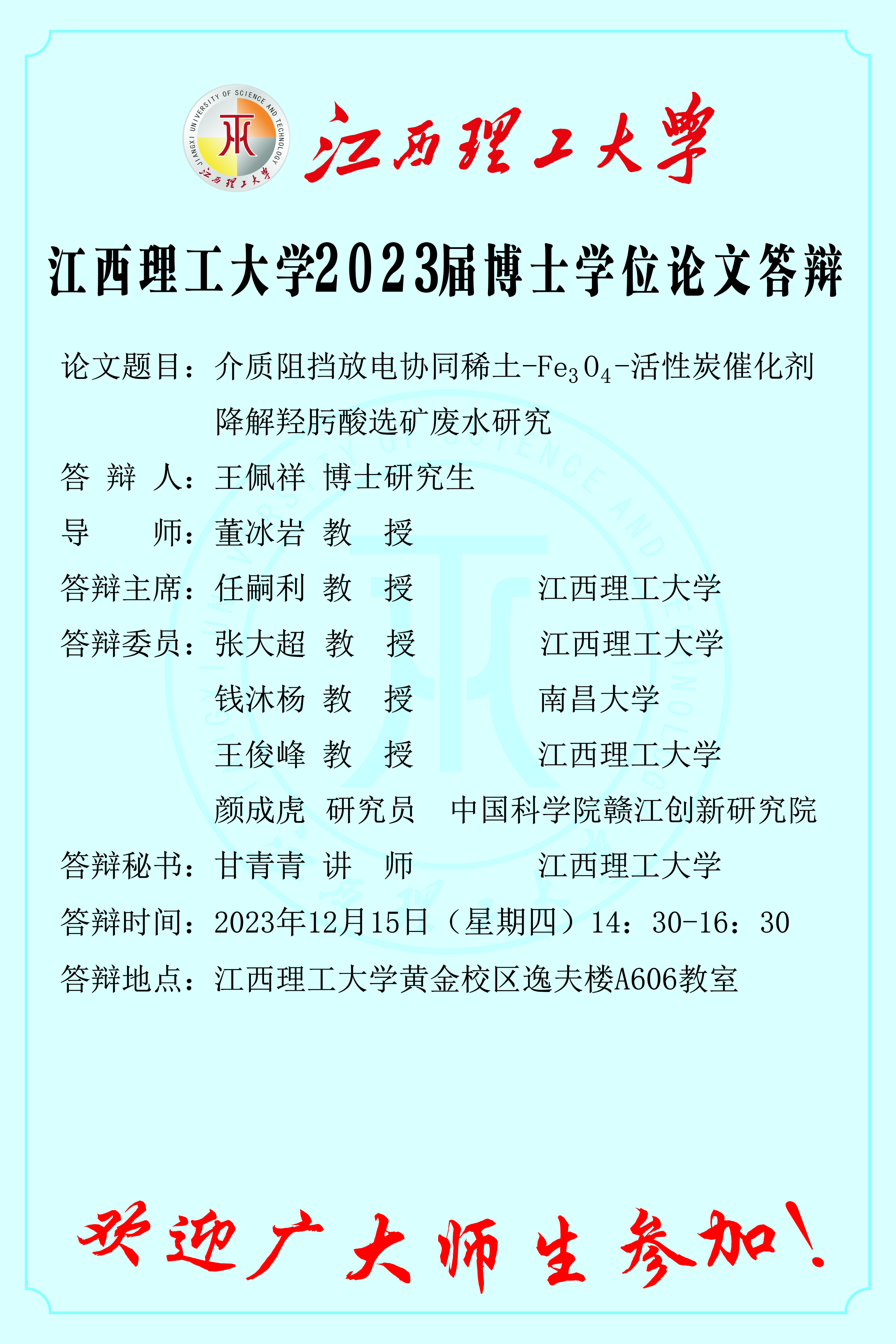 江西理工大学2023届博士学位论文答辩