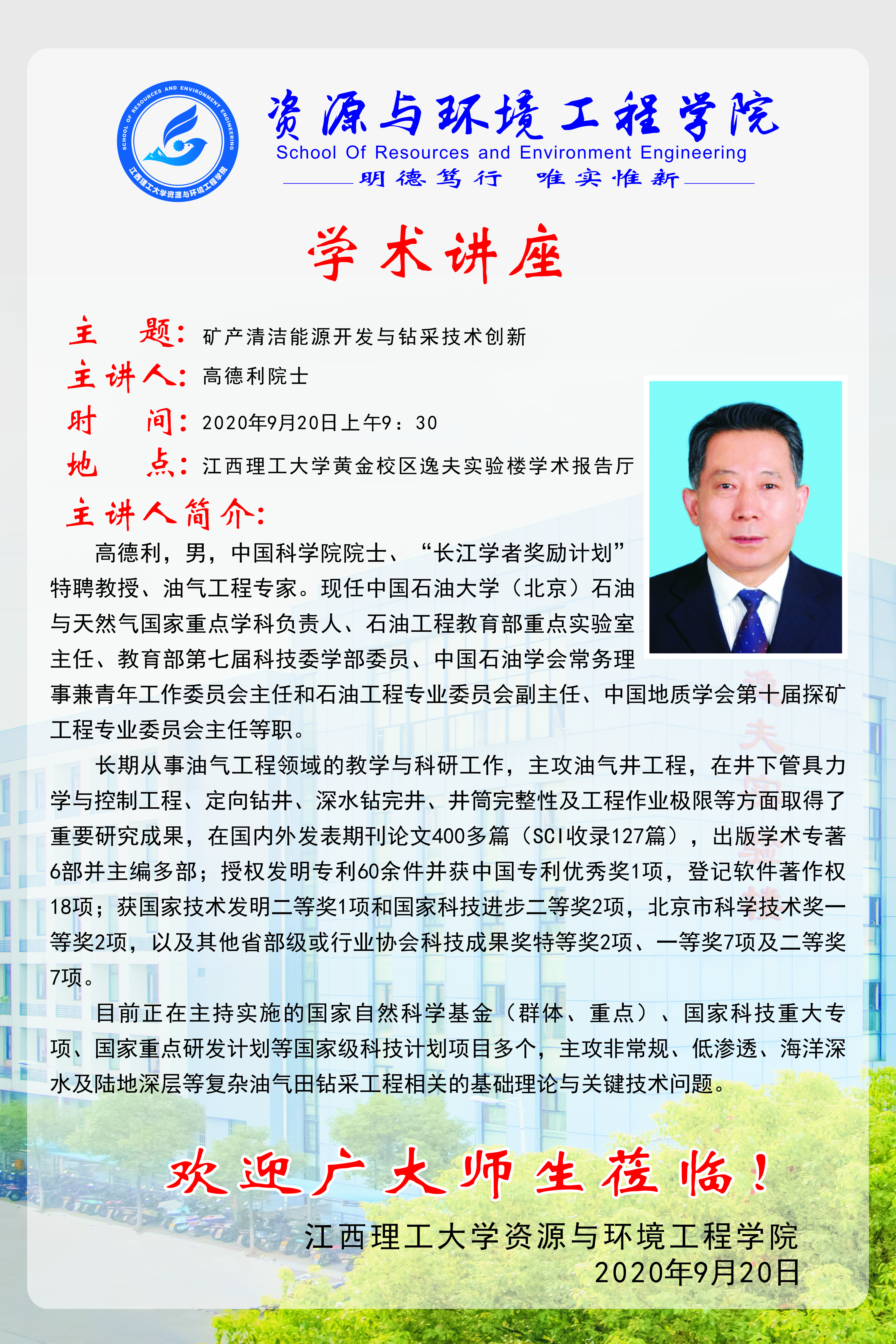 【学术讲座】矿业清洁能源开发与钻采技术创新