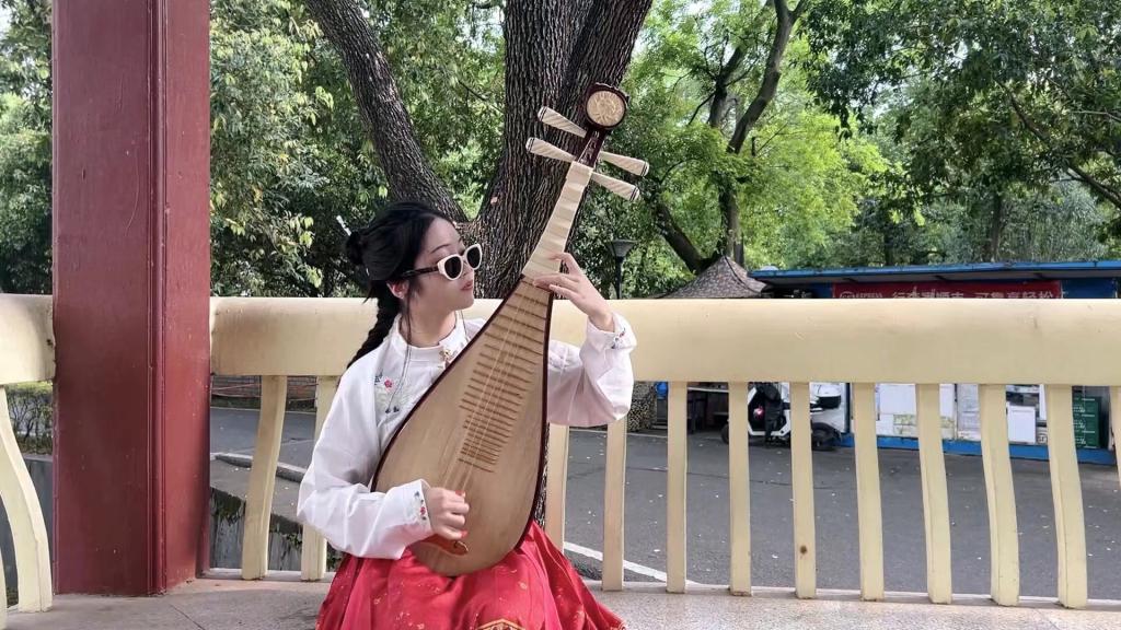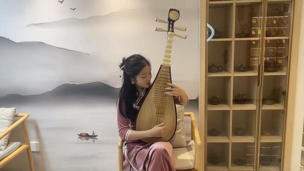 才艺大赛需进行四轮展示,展示非遗艺术作品。在第一轮比拼中,匡奕选择琵琶弹奏,展现出了高超的技艺和深厚的艺术底蕴。她手指轻拨琴弦,优美的旋律如泉水般流淌而出,让人陶醉其中。每一个音符都充满了情感,仿佛诉说着千年的故事,令人为之动容。