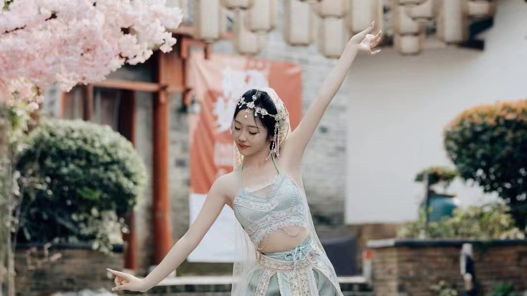 第三轮上,匡奕的敦煌舞表演更是一绝,她身着华丽的舞衣,翩翩起舞,仿佛穿越时空,回到了古代的敦煌。她的舞姿优雅大方,动作轻盈飘逸,赢得了大家的阵阵掌声。