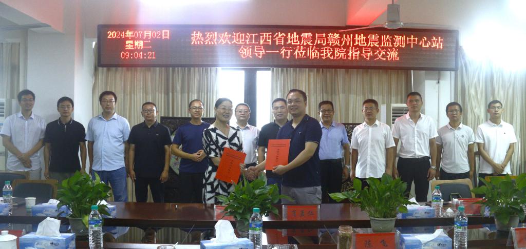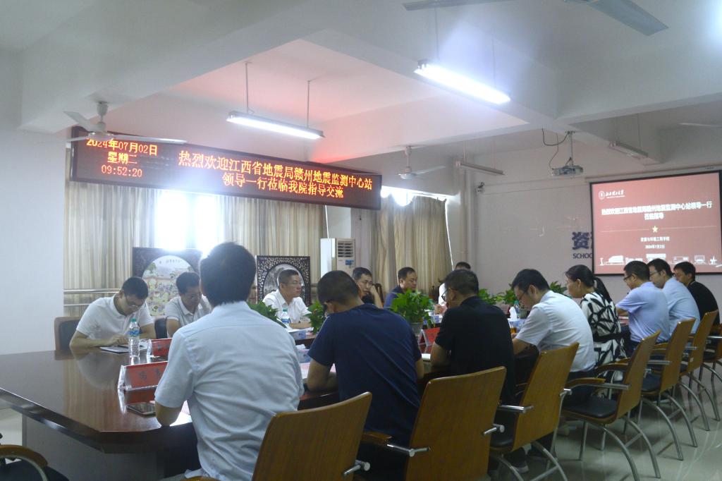本网讯 7月2日,江西省地震局监测预报与科技处处长饶涛,赣州地震监测中心站站长肖孟仁、副站长刘宽等一行来校交流,在黄金校区逸夫楼第一会议室举行了战略合作协议签订会。我院院长何桂春、党委书记陈明、副院长陈飞和相关专业教师参加了会议。