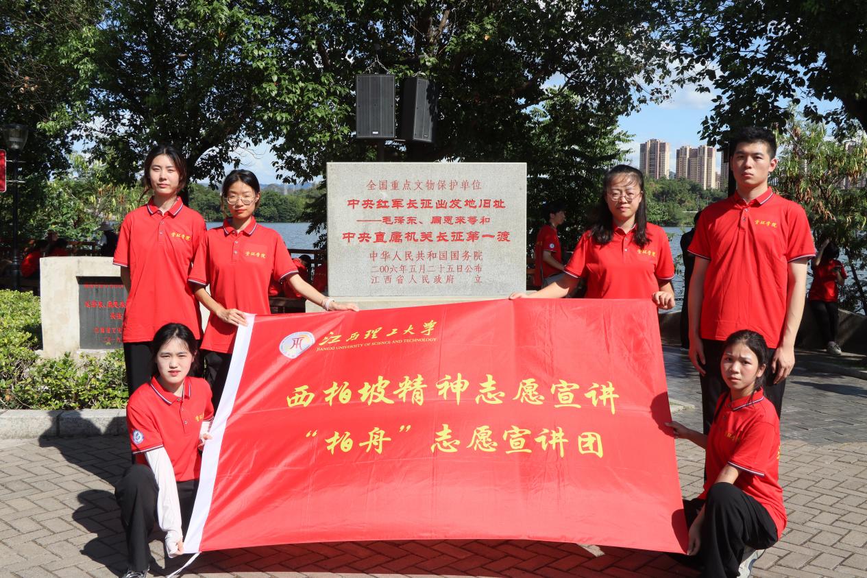 本网讯 为深入学习贯彻习近平新时代中国特色社会主义思想和党的二十大精神,落实“强国复兴有我”群众性主题宣传教育活动相关要求,引导动员青年学生大力弘扬西柏坡精神,我院“柏舟”志愿宣讲团成功入选并围绕以“谦虚谨慎、艰苦奋斗、实事求是、一心为民”为核心内容的西柏坡精神,面向学校师生和社区居民、企事业单位员工等分别在校内、瑞金、于都、沙石镇九里峰山社区等开展宣讲。