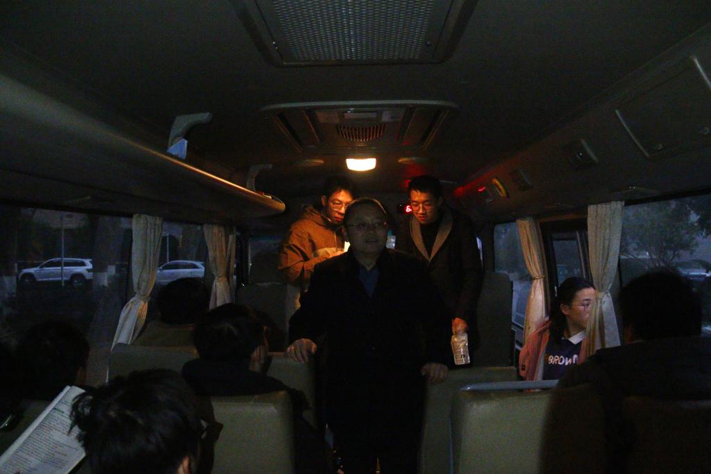 大巴车启动后,学院领导以及志愿者们站在路边,挥手送别考研学子,为他们献上自己最衷心的祝愿。
