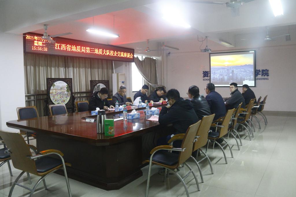 本网讯 3月4日,江西省地质局第三地质大队副队长谢德芳一行来校交流,在黄金校区逸夫楼第一会议室举行校企交流座谈会。学院党委书记陈明和相关教师参加了座谈会。