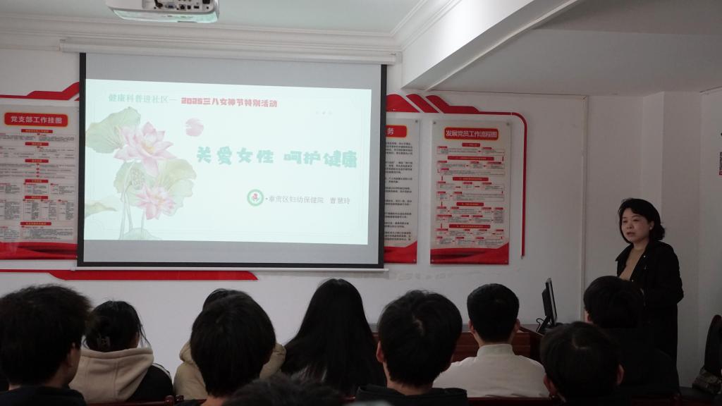 本网讯 3月8日下午,学院青年志愿者协会携手水南街道学府社区,共同举办“关爱女性,呵护健康”三八妇女节特别活动。章贡区妇幼保健院副主任医师、国家二级心理咨询师曹惠玲受邀担任主讲嘉宾,通过知识科普、互动游戏与感悟分享,为女性群体送上节日的温暖与力量。