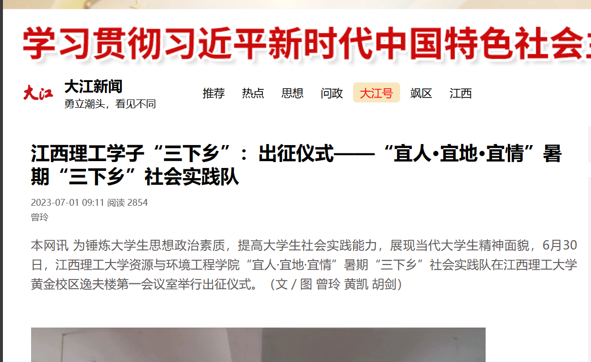 本网讯 为锤炼大学生思想政治素质,提高大学生社会实践能力,展现当代大学生精神面貌,6月30日,安博站官网登录入口,安博(中国)“宜人·宜地·宜情”暑期“三下乡”社会实践队在江西理工大学黄金校区逸夫楼第一会议室举行出征仪式。(文/图 曾玲 黄凯 胡剑)