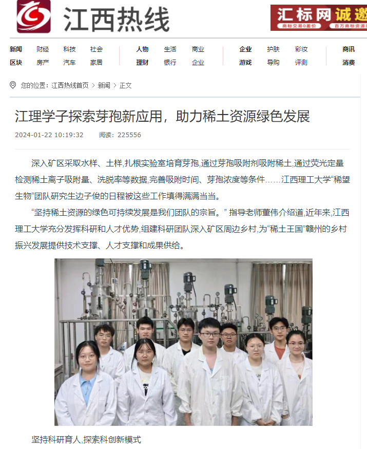 《江西热线》:江理学子探索芽孢新应用,助力稀土资源绿色发展