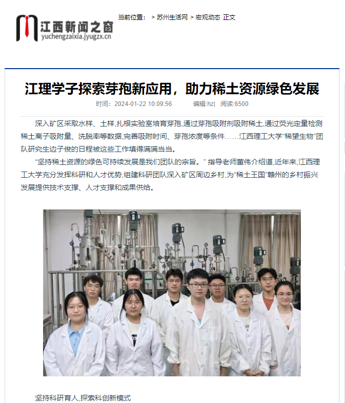 《江西新闻之窗》:江理学子探索芽孢新应用,助力稀土资源绿色发展