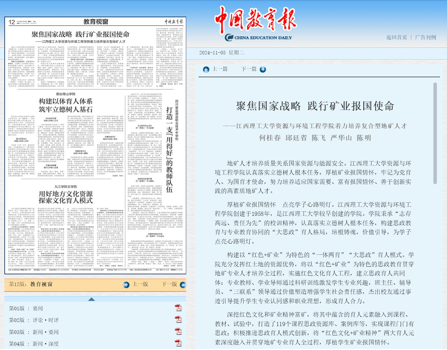 一分耕耘,一分收获。近5年来,学院采矿工程、矿物加工工程、地质工程3个专业获批国家一流专业建设点,采矿工程、矿物加工工程为国家卓越工程师教育培养计划试点专业,为保障国家矿产资源安全培养了大批“富报国情怀、肯扎根一线”的地矿人才;获批国家大创项目56项,获中国国际大学生创新大赛国家金奖、全国五四红旗团支部等国家奖励和荣誉260余项;毕业生国际竞争力得到跨国矿业企业高度认可,江铜集团、金川集团、紫金矿业等13家企业选派了74名毕业生到塞尔维亚等12个共建“一带一路”国家从事工程技术管理。安博站官网登录入口,安博(中国)成效被多家权威媒体报道,受到了社会各界广泛赞誉。