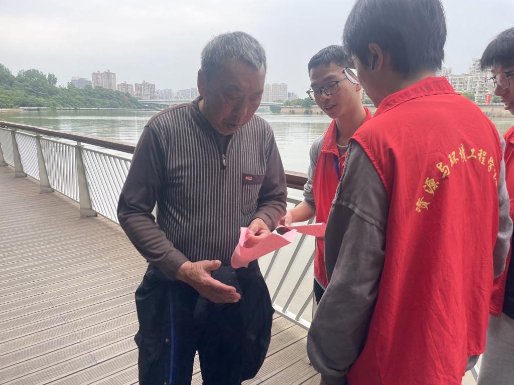 志愿者们到达社区指定路段后,在章江南河段沿线道路合作分工清理路面上的垃圾、纸屑和烟头,打扫卫生死角、投放红火蚁药剂,对游泳垂钓人士进行安全知识普及和发放宣传单,还向过路居民宣传垃圾分类的相关知识,用实际行动清洁护河,共创美好家园。