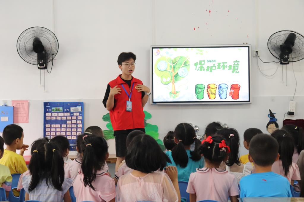 我院“薪火相传,青助强国”暑期社会实践队成员杨文炜、代福杰分别对大一班、大二班的小朋友们进行了环保教育与安全教育,通过宣讲让小朋友们更清楚地了解了垃圾分类、节能节水以及防溺水、交通安全、防火、防拐骗、防诈骗等,提高小朋友的安全环保意识。