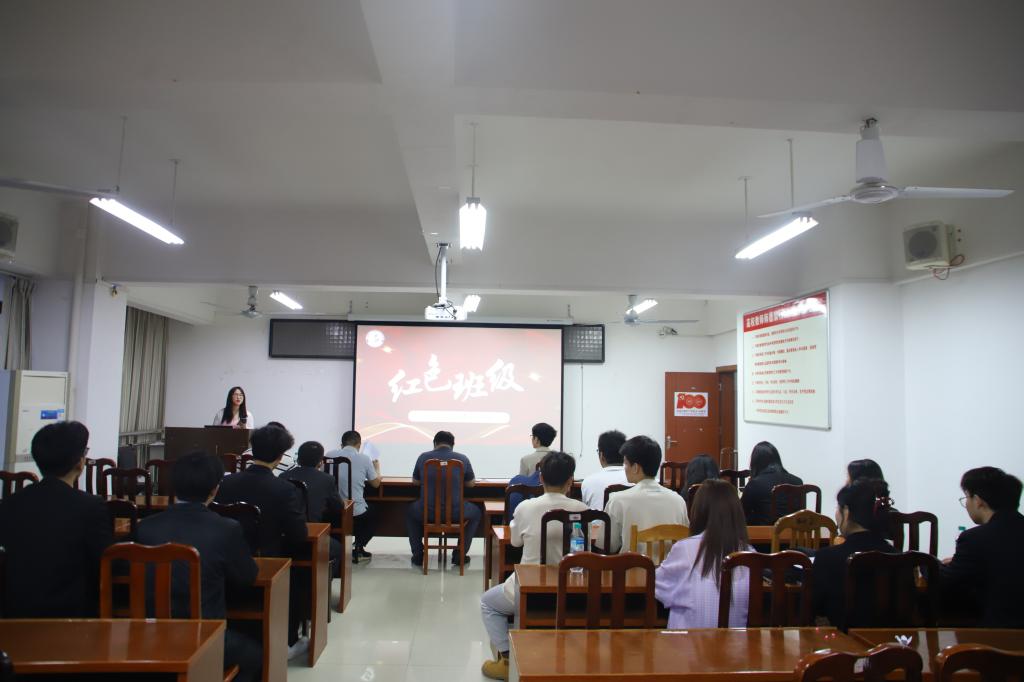 本网讯 为弘扬红色文化、传承红色基因,5月15日,我院于黄金校区逸夫楼第二会议室举办2024年“红色班级”答辩。学院学工办副主任、团委副书记刘浩,辅导员叶景胜、张小普、梁颜祯担任评委,经过初选的22、23级共有8个班级进入现场答辩环节。