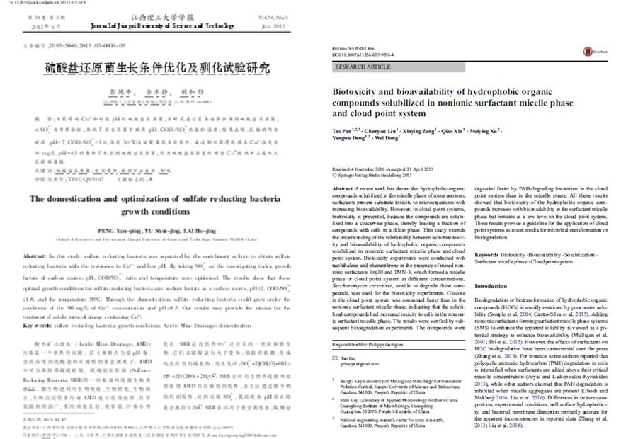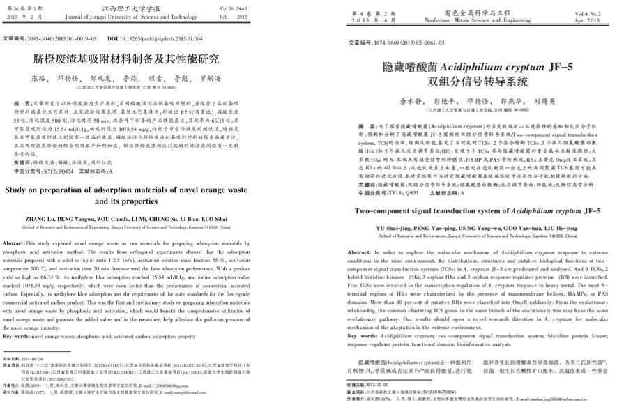 男,1977年11月出生,2010年毕业于上海交通大学,博士,副教授,硕士生导师,博士生协作导师,美国田纳西大学访问学者。任中国生态学会、中国园艺学会、中国有色金属学会、中国稀土学会会员;New phytologist、Biologia Plantarum等国际期刊审稿人。现为江西理工大学(国家离子型稀土高效开发利用工程技术研究中心)环保研究室主任。主要从事土壤污染治理与生态修复、节能减排材料研究开发与应用相关方面的研究工作。近年来先后承担 “十二五”国家科技支撑计划项目、国家科技惠民计划项目、国家自然科学基金、江西省科技支撑计划重点项目、江西省科技支撑计划、江西省自然科学基金、江西省教育厅科学基金及科技落地计划项目等各类项目10多项;发表相关学术论文20余篇,其中高水平论文、EI收录8篇;获全国“节能减排”科技竞赛二等奖1项、三等奖1项。申请发明专利1件,出版专著1部。