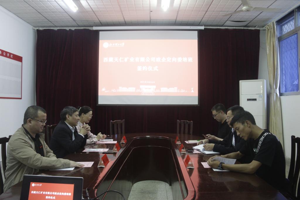 本网讯 10月16日,我校与西藏天仁矿业有限公司在红旗校区图书馆会议室和赵氟隆学术报告厅举行政企定向委培班签约仪式和开班仪式。我校党委副书记罗仙平,西藏天仁矿业有限公司总经理王平,委培班政府管理员桑旦多杰、企业管理员魏官文,我院院长何桂春、党委书记陈明、党委副书记张春雷,我校继续教育学院副院长魏川波,继续教育学院相关工作人员培训班辅导员、班主任和全体委培班学员参加了相关会议。开班仪式由陈明主持。
