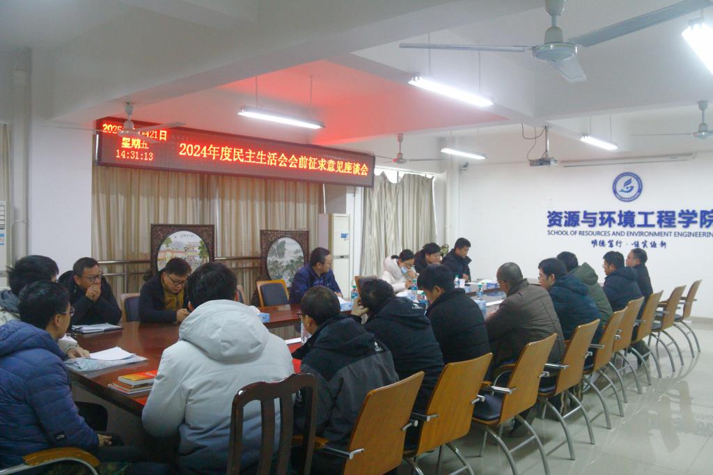 本网讯  2月21日下午,资源与环境工程学院于黄金校区逸夫楼第一会议室召开2024年度学院领导班子和党员领导干部民主生活会会前征求意见座谈会学院党委领导班子成员、党委委员、党支部书记、系/教研室主任、民主党派代表、高层次人才代表、教师代表参加了座谈会。会议由学院党委书记陈明主持。