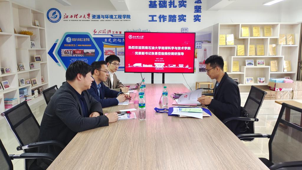 本网讯 4月29日,西南石油大学地球科学与技术学院党委副书记张勇来访交流。我院党委副书记饶先发、学工办副主任兼团委副书记刘浩、辅导员梁颜祯接待了张勇,并于黄金校区逸夫楼辅导员工作室举行了座谈会。