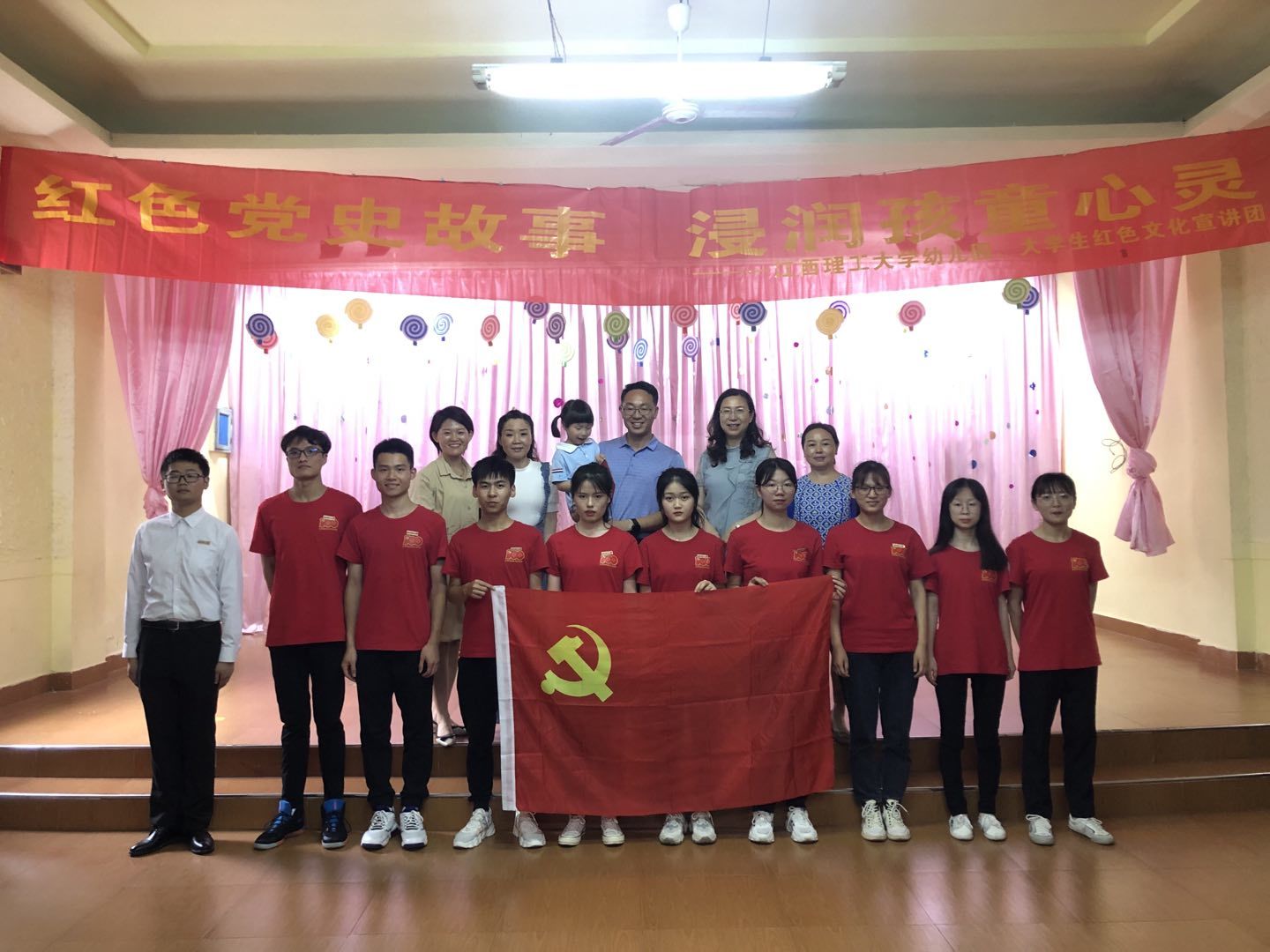 本网讯 5月11日下午,我院大学生红色文化宣讲团赴江西理工大学幼儿园开展“红色党史故事 浸润孩童心灵”主题红色故事宣讲活动。幼儿园园长王赣红,我院党委副书记饶先发、辅导员张小普及11名宣讲团成员参加了此次活动。