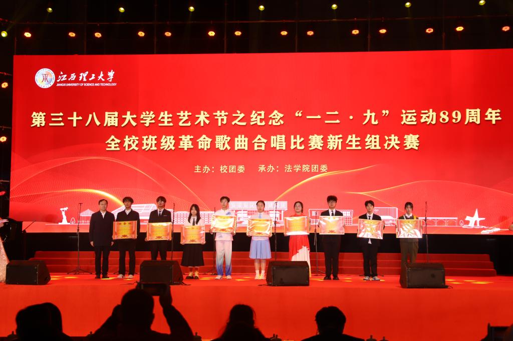 本网讯  12月7日,我校在红旗校区新体育馆举办了第三十八届大学生艺术节之纪念“一二·九”运动89周年全校班级革命歌曲合唱赣州赛区比赛决赛。来自赣州校区各学院的25个新生班级和25个老生班级分别参加了新生组、老生组的角逐,校党委常委、宣传部部长盛晓明,各参赛班级全体同学、“三联系”领导、班主任、辅导员现场共享了此次视听盛宴。